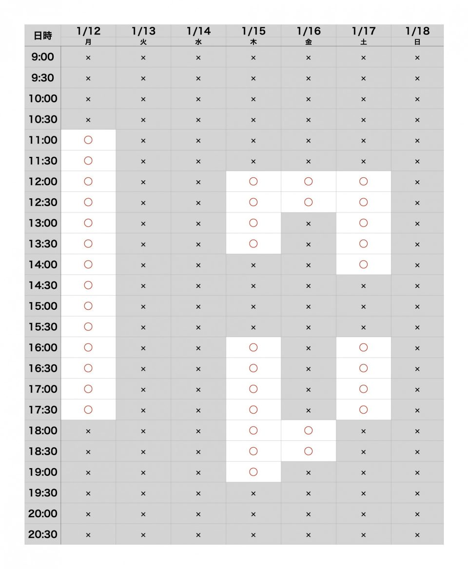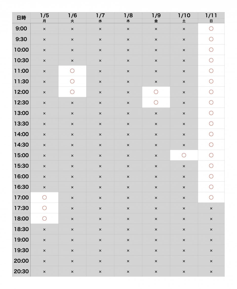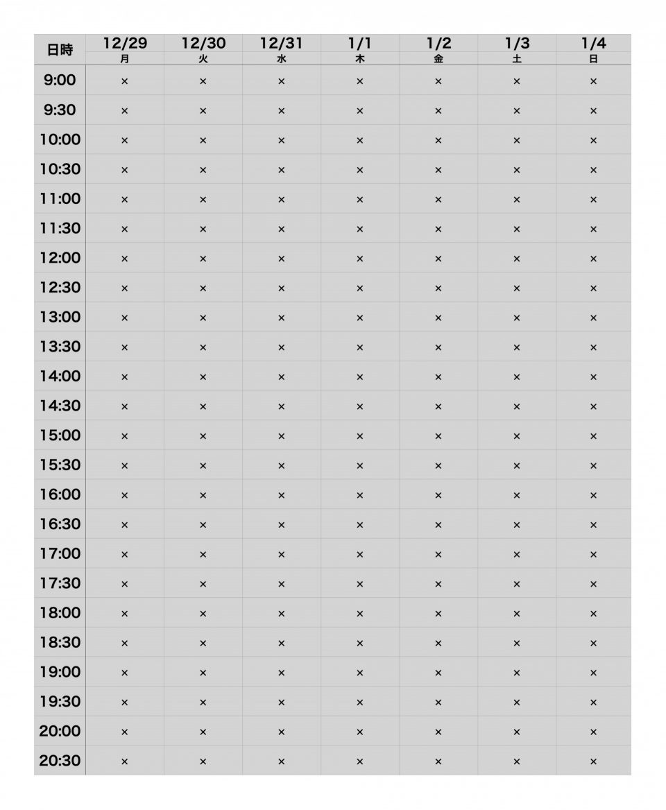 現在、年内のご予約はすべて満枠となっております。